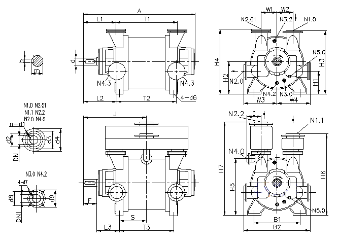 N2.2分離器法蘭   N3.0工作液接口   N3.2填料函密封液接口